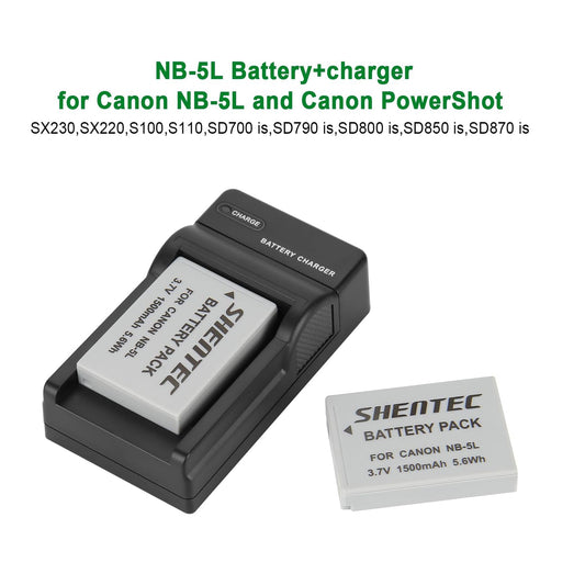 `SHENTEC ładowarka akumulatora Li-ion 3.85V 1500mAh do Canon NB-5L PowerShot S100`