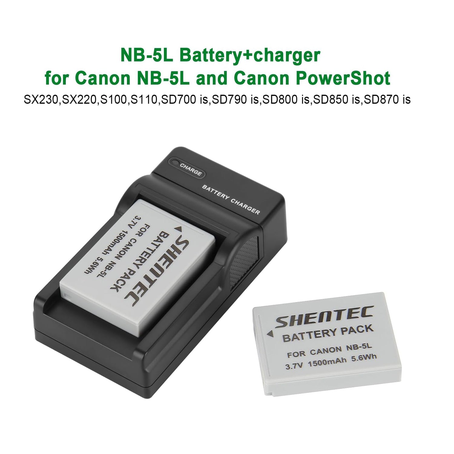 - Kompatybilne z: Canon NB-5L; Canon Powershot S100, S110, SD700 IS, SD790 IS, SD800 IS, SD850 IS, SD870 IS, SD880 IS, SD890 IS, SD900 IS, SD950 IS, SD970 IS, SD970 IS, SD970 IS, SD970 IS, SD970 9990 I9S, SX200 IS, SX210 IS, SX220 IS, SX230 HS (akumulatory do aparatów);